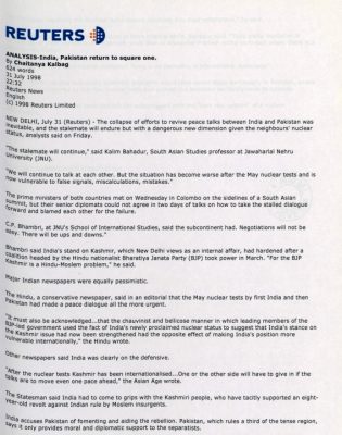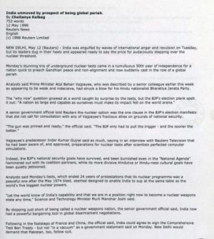 New Delhi, May 13 (Reuters) – Pakistan’s test launch of its longest-range missile last month triggered this week’s series of underground nuclear tests by India, a senior Indian official said on Wednesday.