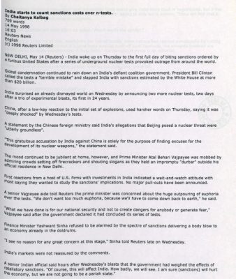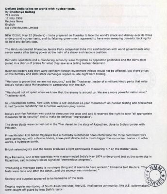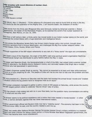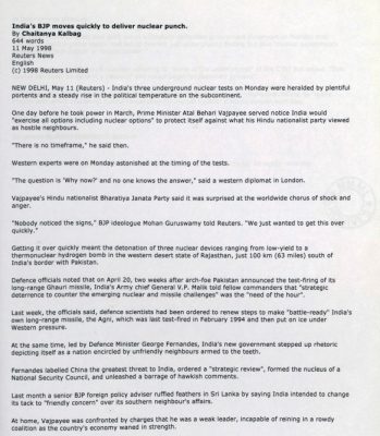 In a briefing for Western news agencies hours after India stunned the world with two more underground nuclear blasts, the official, who spoke on condition of anonymity, set forth the rationale for the tests in unambiguous terms.