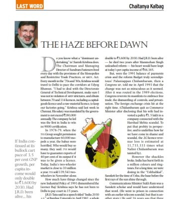 From the Editor Do you know what a “dominant undertaking” is Suresh Krishna does. The Chairman and Managing Director of Sundram Fasteners lived every day with the provisions of the Monopolies and Restrictive Trade Practices, or MRTP, Act. Every month in the ’70s and ’80s. Krishna would travel to Delhi to pace the corridors at…